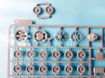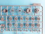 In my opinion the running gear is one of the most outstanding parts of the kit. Both rollers and wheels show good external detail and well-marked rubber bands. The rollers are simply glued in pairs, while the road wheels show internal struts and rings with a small notch that helps to match them correctly. The wheel wells seem very well replicated to me, and there is no trace of plastic inside the holes. The springs and suspension arms are separated pieces.