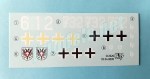 La hoja de calcas contiene tres tipos de cruces alemanas, numerales y emblemas divisionarios y regimentales. Los motivos están bien impresos y aparentan ser finos. No deben dar problemas.