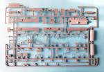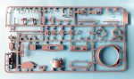 The turret ring comes separate in one piece. The stowage compartment is made up in three pieces, with a separate cover. The side access hatches have a hinged frame and the hatches in two pieces with the visor also made separately. On the ceiling there is a couple of handles and the ventilator cover. Both smoke dischargers are made in one piece. Finally, the cupola is made up of several overlapping rings. The commander’s hatch comes separate and can be showed opened. There are two types of plastic visors to place around the dome ring, but I ignore the difference between them. The turret’s protective armor is made up of three brackets on each side and the ring in five well-profiled sections with a thickness more than adequate to be made of plastic. The sections in front of the side hatches can be shown folded, which is an advantage if you want to place a figure.