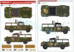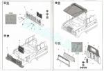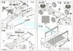 The kit includes four sprues of parts, the cab floor, tarp and rear box molded separately, a clear sprue, a sheet of adhesive masks, a photo-etched fret, five vinyl tires plus eight plastic polycaps, the decal sheet and three instruction manuals. The total number of plastic parts in this kit, excluding the figure, is below 150, which seems quite adequate for the low complexity of a light vehicle like this.