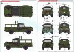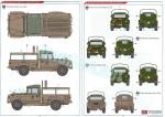 There are not many assembly options: we can represent the vehicle with or without a tarp, simulate the driver’s window raised or lowered, or use plastic or photo-etched parts in the headlight brush guards. Although the instructions do not indicate it, we can also place the tailgate and the doors open. Paint choices have some variety in camouflage patterns and there is also an overall sand finish for the less experienced.