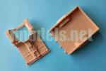 It is molded in one piece with very good definition in the stamped floor and the external sides, which show sharp red reflectors, two steps in the folded position with defined latches and the hinges of the separate tailgate. This rear side can be placed open, although the instructions do not point it out. The rear fenders are joined in the piece and are thin. Each of them has a couple of positive pin marks on the underside, but they are not worth cleaning as the wheels will hide them. The box is attached to the chassis by means of four plastic pins, just like the floor.