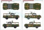 - Dashboard instruments, plenty of unit badges, white and yellow numbers, plates, blue and yellow stripes and three types of camo fabric for the figure uniform. Glossy and thin appearance. Good register and color saturation. No excess of carrier film.