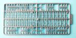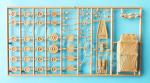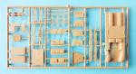 La caja nos entrega tres bastidores de piezas, dos de ellos copiados de ESCI y un tercero nuevo que contiene las cadenas, una lámina de plástico transparente, las calcas y las instrucciones. Las piezas de plástico tienen un moldeado bastante bueno, heredero de la marca original, muy avanzada en su tiempo en este aspecto. Aunque no hay rebabas, varias piezas poseen marcas de eyector negativas y en otras se aprecian líneas de molde muy finas. El parabrisas está plagado de cilindros de eyector.