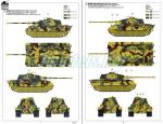 All tanks shown in the profiles wear the standard German tricolor camouflage with variations (speckled, applied since August 1944, or not, before that date). One of them sports a winter white wash. For a change, only two of the four tanks wear a Zimmerit coating.