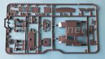 La plancha frontal del chasis, la cubierta del motor y los guardabarros vienen unidos en una pieza. La parte superior de la superestructura está separada del conjunto, así como las salidas de ventilación del motor. Las escotillas de acceso de la transmisión y el motor vienen separados, con buen detalle en las bisagras en ambos casos. Uno de cada par de accesos tiene fondo que Tamiya ha usado para situar los tornillos de sujeción del chasis, quedando así ocultos por las tapas. Este sistema evita usar cianocrilato para pegar esta pieza al chasis metálico. En la cubierta del motor hay también otros dos accesos cerrados con bisagras detalladas y una pieza que incluye los cables de arrastre, que muestran buena definición.