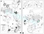 Unlike similar kits, assembly begins with the cab, leaving the engine for a much later stage. Construction alternatives allow for doors to be placed open or closed and offer two types of wheel hubs. The addition of the tarp is not an option in the instructions, but in fact may not be used. The military versions of this kit also feature a Notek headlight in front of the engine grille. According to the instructions, the addition of the engine and brake wiring is intended for experienced modellers. MiniArt must certainly have their concept of experience set too low.