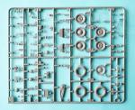 The wheels are divided into two pieces. The tire comes separated from the rim, but this includes the outer tire sidewall with the raised manufacturer’s logo (Continental) perfectly legible. The tread is finely engraved with hardly any traces of seam lines. MiniArt provides two types of wheels, one with hubcaps bearing the manufacturer’s logo (Tempo) and one without it. All three wheels have small pegs on the inner rim to attach them directly to the brake drums.