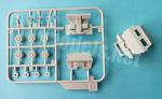 The cab front, sides and roof are included in a single, separately molded piece. The windows are clear pieces fitted from the inside into recesses. The cab shell has very good external detail on the armour, the upper hatch, the front grille and the window and windscreen frames. The windscreen wipers and the vertical access rails next to the doors are reproduced in place, although the latter are not very realistic as they are not hollowed out and should be replaced.
