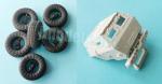 Las llantas de plástico están separadas de los neumáticos. Los lados externos poseen un detalle idéntico y nítido. Lo que serían los tambores de freno vienen sueltos y son distintos para las ruedas trasera y para las delanteras. Estas últimas llevan muescas para poder instalar la barra estabilizadora.