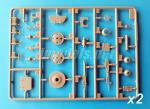 Las ruedas tractoras están compuestas de cuatro piezas cada una, dos de ellas formando los rotores internos detallados con pequeños fotograbados. Los dientes están claramente perfilados y no deberían suponer impedimento para ajustar las cadenas. Los rotores internos de estas ruedas van pegados al casco mediante dos pequeños vástagos de alineación, y no con ejes como es de esperar.