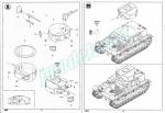 El folleto de instrucciones tiene doce páginas impresas en blanco y negro. Trae un plano de piezas y diez capítulos de montaje. Como es habitual en el fabricante, también hay una hoja separada a color que muestra las opciones de pintura, nada originales puesto que son monocromas, y una tabla de pinturas con referencias de varios fabricantes (Gunze Sangyo, Vallejo, Model Master, Tamiya y Humbrol). No hay indicación sobre las unidades a las que pudieron pertenecer los dos carros que se muestran. Aunque el montaje aparece claramente secuenciado y no es difícil de seguir, conviene estudiar bien el tren de rodaje. Como he señalado, el folleto no dice nada sobre el armamento adicional en la torre y parece que HobbyBoss no ha previsto que se emplee en esta maqueta, aunque es factible hacerlo.